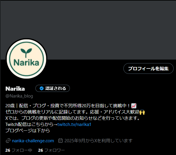 Xについては、フォロワーが26になり、2週間で-6人となりました!